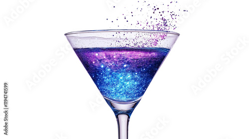 Glitter galaxy in drinks beverage cocktail glass isolated on a white background