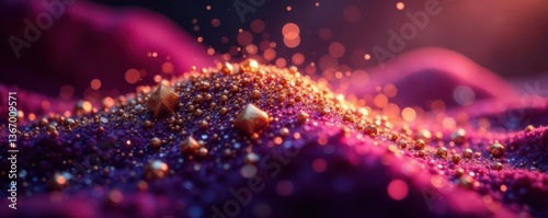 Glittering metallic dust settles on opulent velvet, glitter, luxury