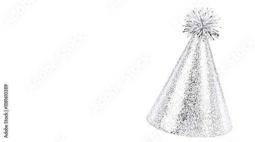 Glittery New Year’s party hat with pom-pom, isolated on white background, festive element, stock photo