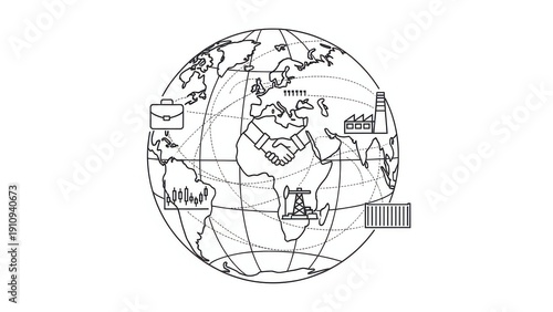 global, business, international, trade, earth, map, partnership, handshake, industry, factory, oil, rig, barcode, scanner, briefcase, icon, logistic, network, economic, connection, commerce, flow, supply, chain, corporate, deal, growth, globalisation, concept, strategy