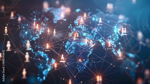 Global business structure of networking, analysis and data exchange customer connection, Generative AI illustrations.