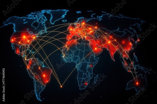 Global connectivity illustration with glowing nodes and network connections.