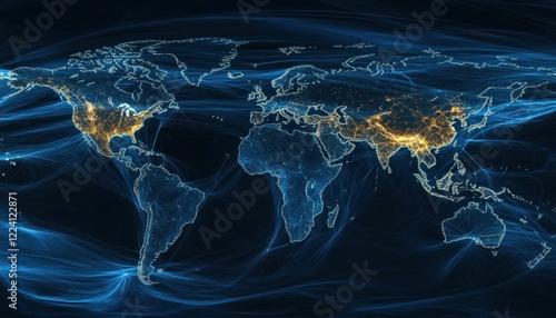 global, network, connectivity, earth, map, digital, technology, communication, datum, cyberspace, connection, line, blue, glowing, dark, background, light, graphic, modern, abstract, illustration, future, structure, system, earth, planet, continent, country, infrastructure, transportation, logistic, flow, route, link, worldwide, information, distribution, geographic, visualisation, point, path, node, interconnected, globalisation, urban, area, region