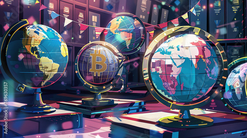 Global Digital Currency Adoption Illustration with Globes and Flags