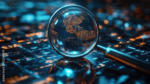 Global Network Earth Globe Under Magnifying Glass Digital World Technology Concept