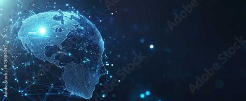Global Network Connection Abstract Digital Earth with Glowing Lines and Nodes