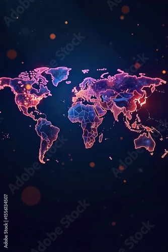 Global network connections visualized with fiber optic cables and a world map, illustrating seamless international connectivity and data flow , data transfer, network