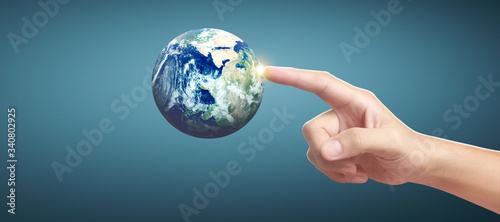 Globe ,earth in hand, holding our planet glowing. Earth image provided by Nasa