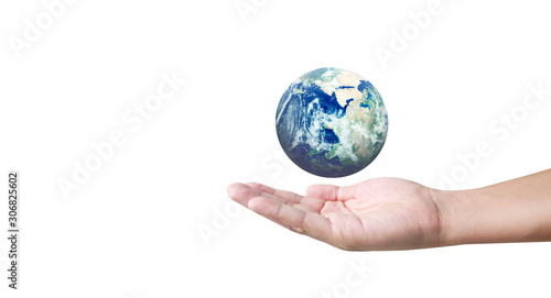 Globe ,earth in human hand, . Earth image provided by Nasa