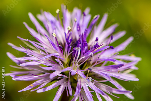 Globularia cordifolia flower growing in mountains, close up shoot