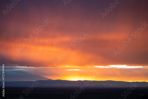 Glorious Wyoming sunset with red orange tones