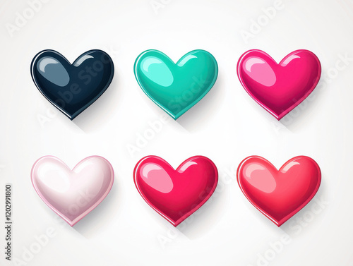 effect, illustration, nubes, icon, glossy, colourful, three-dimensional, shiny, black, teal, pink, red, love, symbol, romantic, valentine, decoration, design, digital, art, vibrant, bright, modern, gradient, smooth, glowing, neon, shape, creative, abstract, heart shape, collection, set, graphic, photo, image, billboard, cover, advertising, wallpaper, poster, canvas, print, photograph, card, texture, pattern