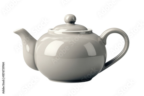 teapot, ceramic, grey, glossy, shiny, smooth, utensil, drink, hot, liquid, container, vessel, object, isolated, studio, black, clean, modern, domestic, tableware, kitchen utensile, brewing, tea, pouring, handle, lid, spout, round, curve, elegant, minimalist, still, life, photo, single, item, equipment