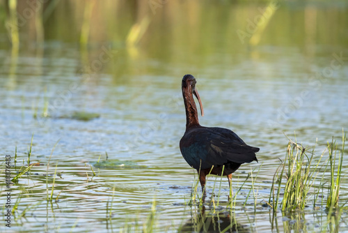Glossy Ibis (Plegadis falcinellus) Searching for Food in a Marsh