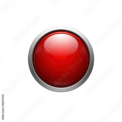 Glossy Red Button Isolated on Transparent Background