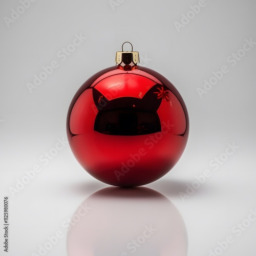Glossy Red Christmas Ornament with Reflective Surface and Golden Cap, Minimalist Red Holiday Bauble Featuring High Shine and Elegance, Shiny Red Christmas Ball with Mirror-Like Reflection