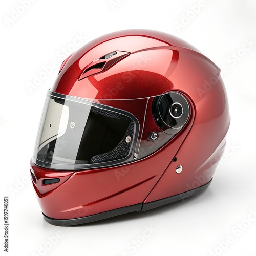 Glossy Red Motorcycle Helmet Isolated on White – Ultra HD Metallic Sport Gear Image
