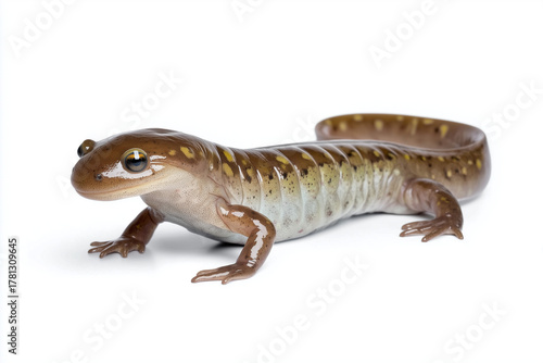 salamander, amphibian, spotted, glossy, shiny, brown, yellow, crawl, tail, smooth, wild, nature, cold-blooded, lizzard, reptile, skin, creature, animal, leg, small, moisture, slimy, forest, creeping, isolated, white background, wet, half face, spot, wildlife, exotic, terrestrial, low, rare, horizontal, crawling, eye, underbrush, movement, biology
