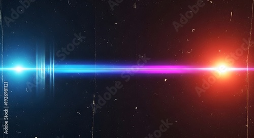 Glowing Vibrant red and blue light beam on dark background abstract visual effect.