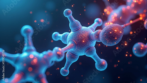 three-dimensional, molecular, structure, glowing, blue, red, node, science, technology, digital, art, design, modern, futuristic, chemistry, biology, illustration, graphic, creative, vibrant, cyber, network, grid, high technology, digital artwork, science fiction