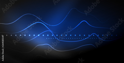 Glowing abstract wave on dark, shiny motion, magic space light. Techno abstract background