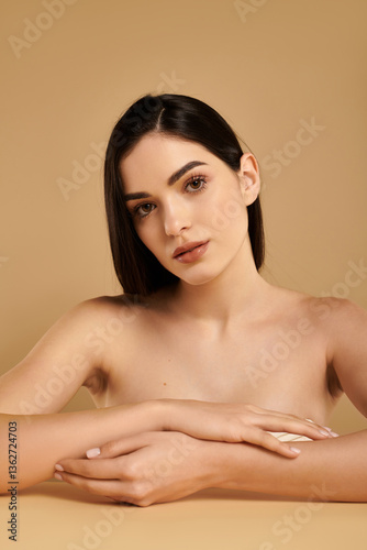 attractive, missy, beauty, skincare, caucasian, skincare, studio, portrait, make-up, natural beauty, radiant, bare skin, elegance, youth, confidence, simplicity, wellness, beauty product, minimalism, stylish, fashion, model, aesthetic, charme, calming, face, serene, captivating, dream