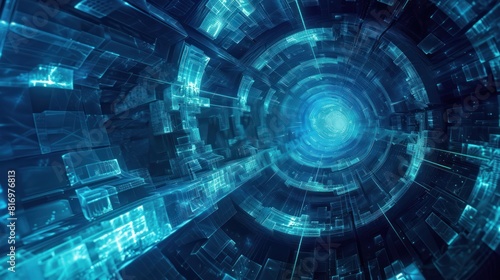 glowing blue abstract background with intricate geometric patterns and a sense of depth.