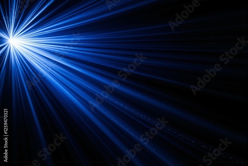 Glowing blue light beams radiate from a central point on a dark background. Abstract energy concept with futuristic illumination. Ai generative