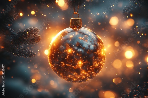 christmas, ornament, ball, decoration, tree, winter, holiday, festive, celebration, sparkle, glistering, light, gold, magic, christmas, new, year, eve, season, december, joy, happiness, background, abstract, design, bokeh, shiny, bright, elegant, luxury, beautiful, hanging, glow, warm, cosy, night, dark, fairy tale, magical
