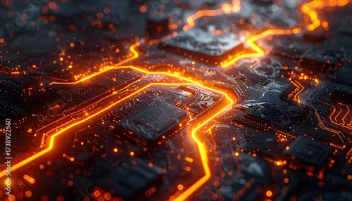 circuit, board, electronic, technology, orange, glow, futuristic, datum, network, connection, system, computing, digital, information, tech, abstract, hardware, processor, chips, microchip, communication, engineering, science, computer, industry, detail, closeup, surface, design, background, electricity, power, component, integrated, signal, connectivity, complex, modern, innovation, artificial, intelligence, motherboard, cyber, rendering, light, bright, structure, texture, pattern