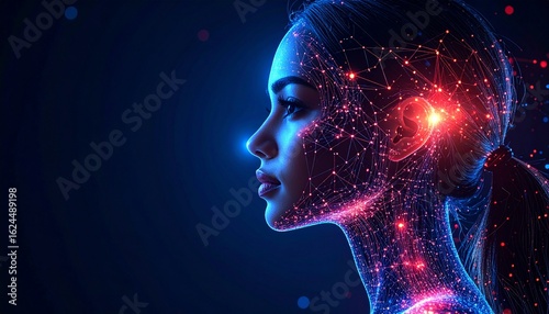 Glowing Digital Human Head Profile in red and Blue