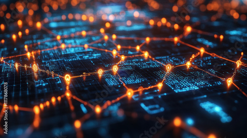 digital, network, interconnected, node, line, glowing, technology, futuristic, datum, communication, system, connection, grid, virtual, cyberspace, abstract, orange, blue, light, pattern, structure, innovation, high technology, visualisation, information, web, cyberspace, design, energy, flow, circuit, electronic, mapping, tech, modern, connectivity, interface, computing
