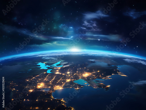 glowing earth from space north america at night with city lights and celestial wonders digital illustration