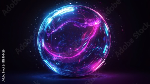 Glowing electric blue and magenta energy sphere with neon like light effects, featuring dynamic swirling patterns and futuristic, vibrant design on transparency background