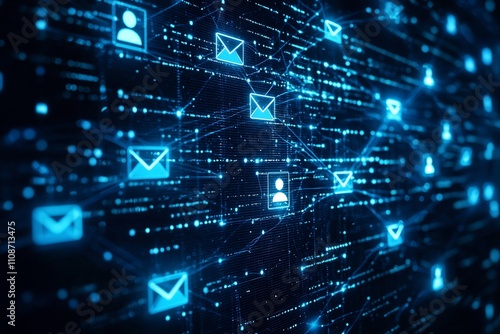 network, digital, technology, communication, connection, datum, cyberspace, icon, electronic mail, notification, glow, light, information, business, abstract, background, futuristic, online, message, signal, digital background