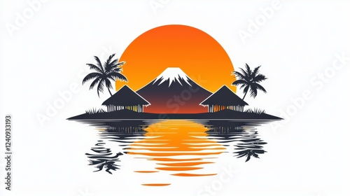 glowing, ember, sunset, traditional, hut, mountain, night, scene, white, background, landscape, silhouette, nature, calmness, calm, water, palm, tree, summer, vacation, tropical, design, minimalist, artistic, peaceful, scenery, serene, picturesque, vibrant, colours, bright, beauty, environment, outdoors, travel, harmony, artwork, craft, creative, visual, illustration, graphic, appealing