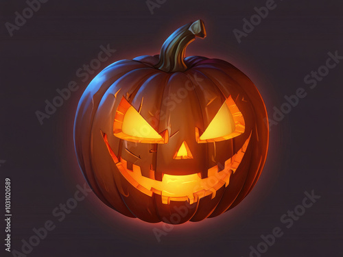Glowing jack-o'-lantern pumpkin for Halloween on black background