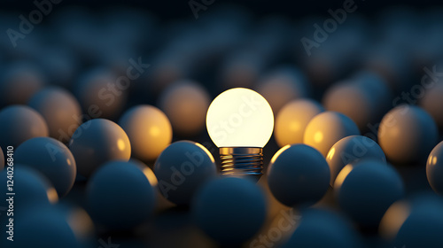 glowing light bulb stands out among unlit bulbs, symbolizing innovation and creativity