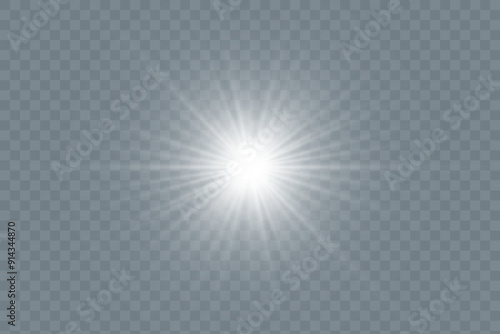 glowing light explodes on a transparent background. with ray. Transparent shining sun, bright flash. Special lens flare light effect.