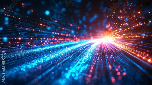 glowing light rays from a blue gradient abstract texture background, creating a futuristic computer-generated scene