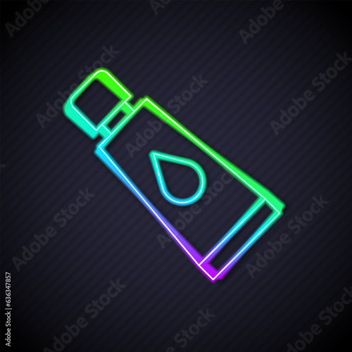 Glowing neon line Cream or lotion cosmetic tube icon isolated on black background. Body care products for woman. Vector
