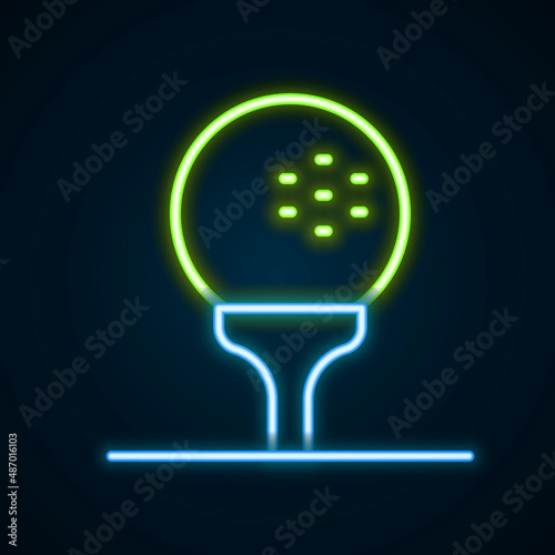 Glowing neon line Golf ball on tee icon isolated on black background. Colorful outline concept. Vector