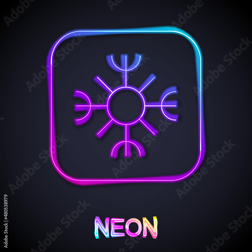 Glowing neon line Snowflake icon isolated on black background. Vector