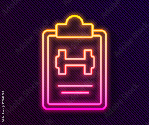 Glowing neon line Sport training program or fitness plan icon isolated on black background. Vector.