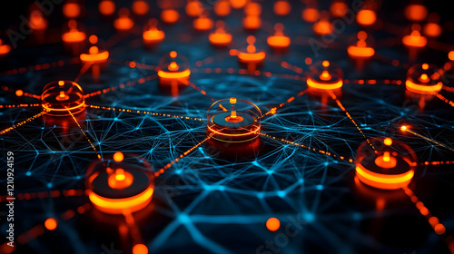 network, connection, technology, digital, datum, communication, cyberspace, global, abstract, node, link, grid, cyber, virtual, futuristic, glowing, orange, blue, dark, line, point, dot, structure, system, web, wireframe, mesh, circuit, electronic, innovation, science, future, progress