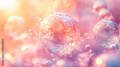 Glowing pink soap bubbles in dreamy sunlight