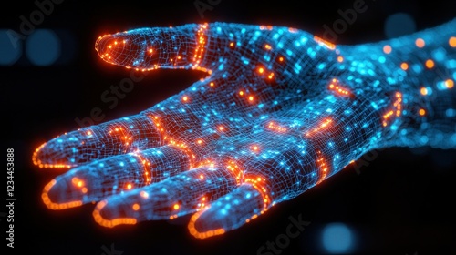 hand, technology, futuristic, digital, innovation, connection, network, science, abstract, cyborg, datum, communication, future, ai, virtual, robot, biology, medicals, design, engineering, analysis, research, cyberspace, system, human, anatomy, body, health care, machine, learning, intelligence, medicine, biotechnology, neural, nano, robotic, genetic, code, signal, electronic, circuit, biometric, security, information, transform, glow, energy