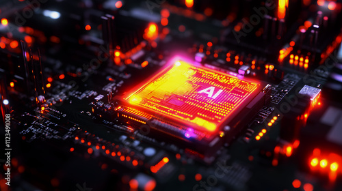 Glowing processor shielded by AI-driven cybersecurity