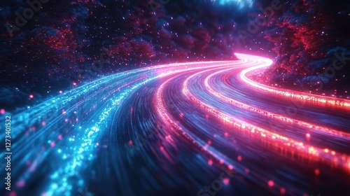 road, speed, glowing, cosmic, abstract, futuristic, technology, digital, light, trail, motion, energy, neon, curve, path, background, space, star, night, galaxy, universe, line, bright, colourful, fantasy, science, fiction, power, flow, dynamic, travel, journey, adventure, innovation, progress, future, concept, design, illustration, graphic, art, visual
