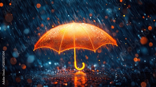 umbrella, rain, night, protection, glowing, abstract, dark, storm, light, water, background, orange, shiny, wet, texture, safety, security, weather, element, design, graphic, illustration, concept, hope, peace, serenity, calm, calmness, mystery, magic, fantasy, power, energy, vibrant, bright, bold, dramatic, atmospheric, mood, ambience, scene, image, photo